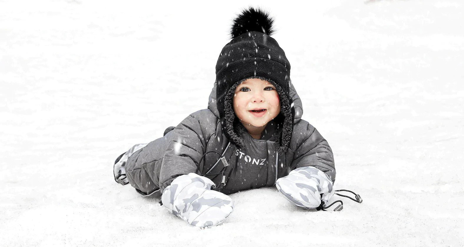 With ear covering and super-soft fabric, this winter favourite will stay on any size head with velcro closure under the chin! Now they can explore the outdoors and you’ll know they’re safe out there.