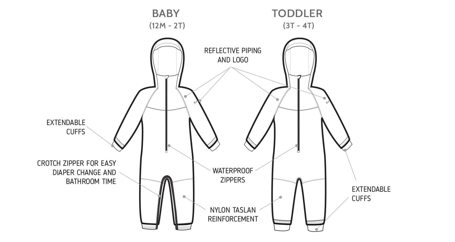 • Lightweight & foldable: Unexpected rainstorm? No worries, their rain suit is extra compact when folded and quickly goes over anything your toddler is wearing.