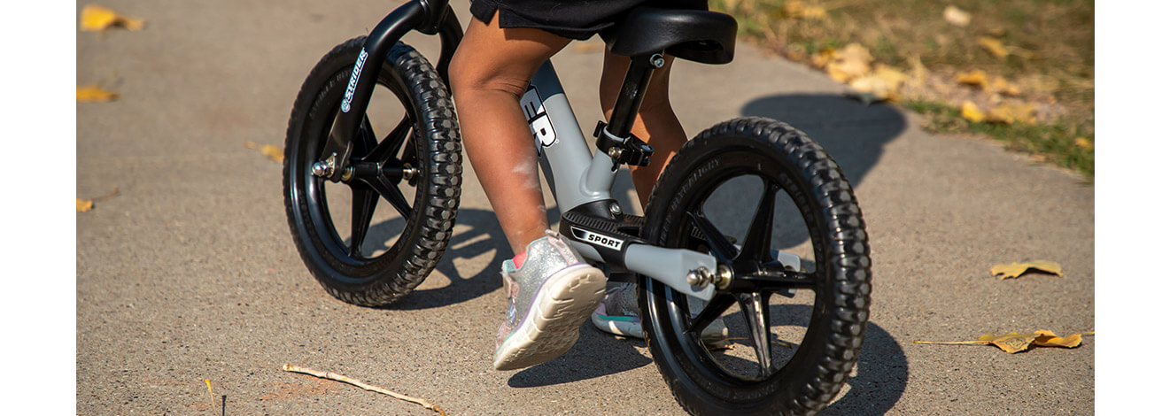 The Sport is our best all-around model. Mini-grips mean little mitts can easily take control and make this lean, mean, durable bike the biggest bang for your buck, which is probably why it’s our best seller. The 12 Sport is the perfect bike to take your child from baby steps to big strides, all without busting out a toolkit (tool-free seat and handlebar adjustment AND tires that never go flat). The Strider Sport has a seat height range from 28-48 cm (11-19 in.), which means it fits a huge range of inseam lengths (30-51 cm [12-20 in.]). The cushy, padded seat and an additional extra-long seatpost means your child will get years out of their Strider.
