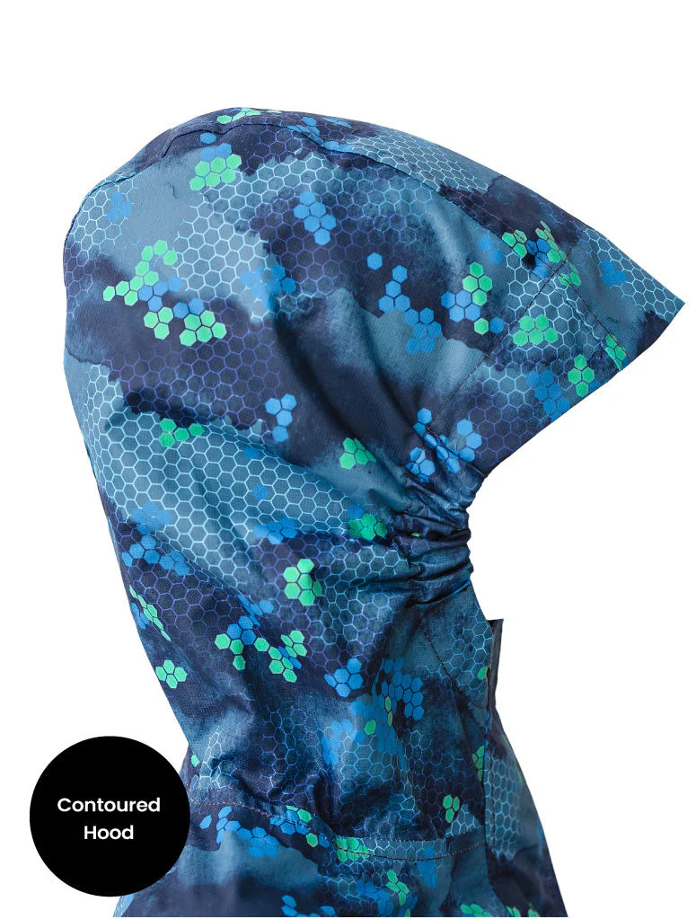 - Hood is elasticated for a snug fit, with a built in peak to shield the face.