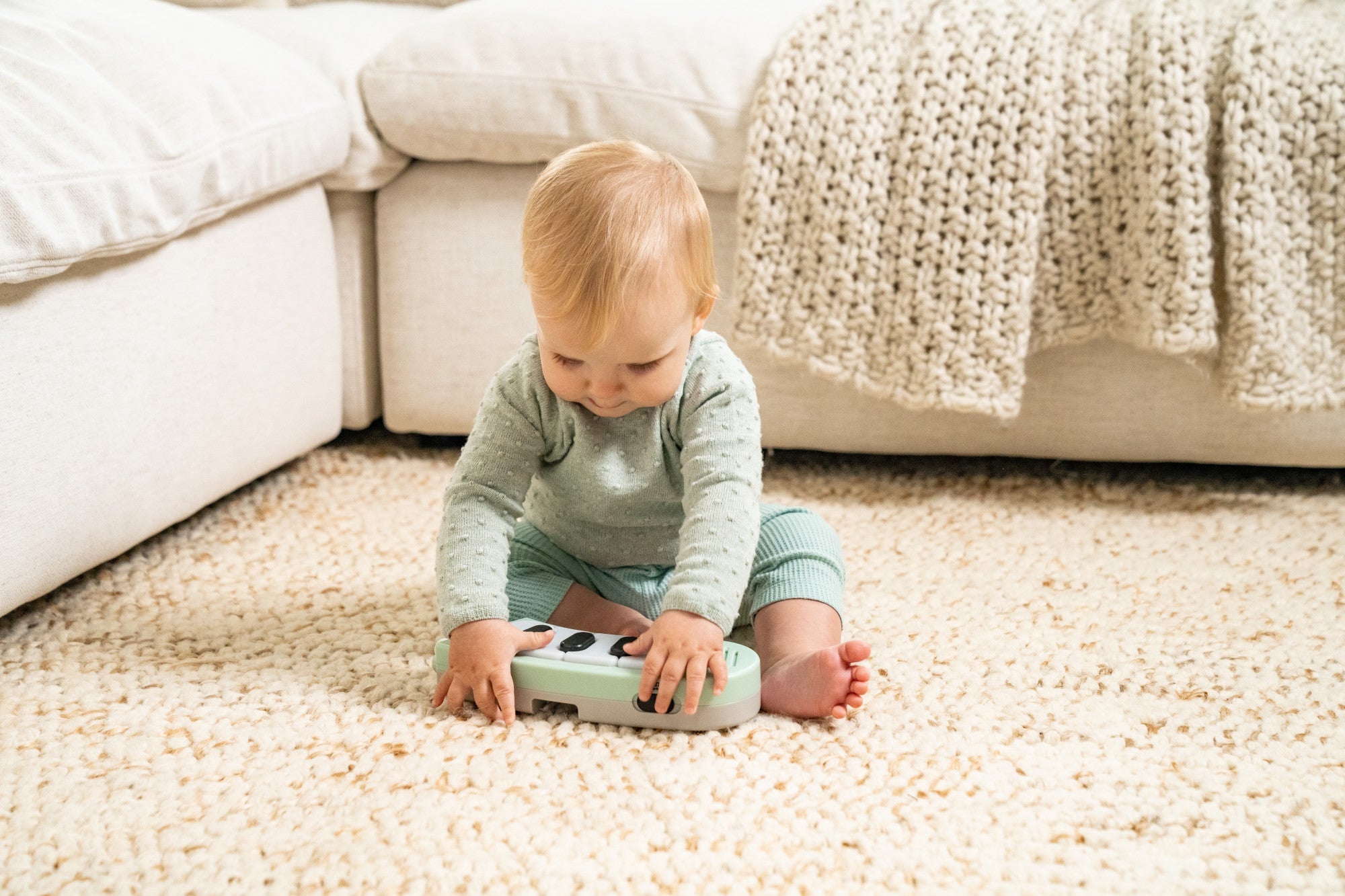 - So many ways to play - 6 interactive toys include playfull beads maze, lily with sensory crinkle leaves, bouncing bear with spinning rattle, bird wind chime, drum with bouncing beads, tummy time take along electronic piano with lights and sounds