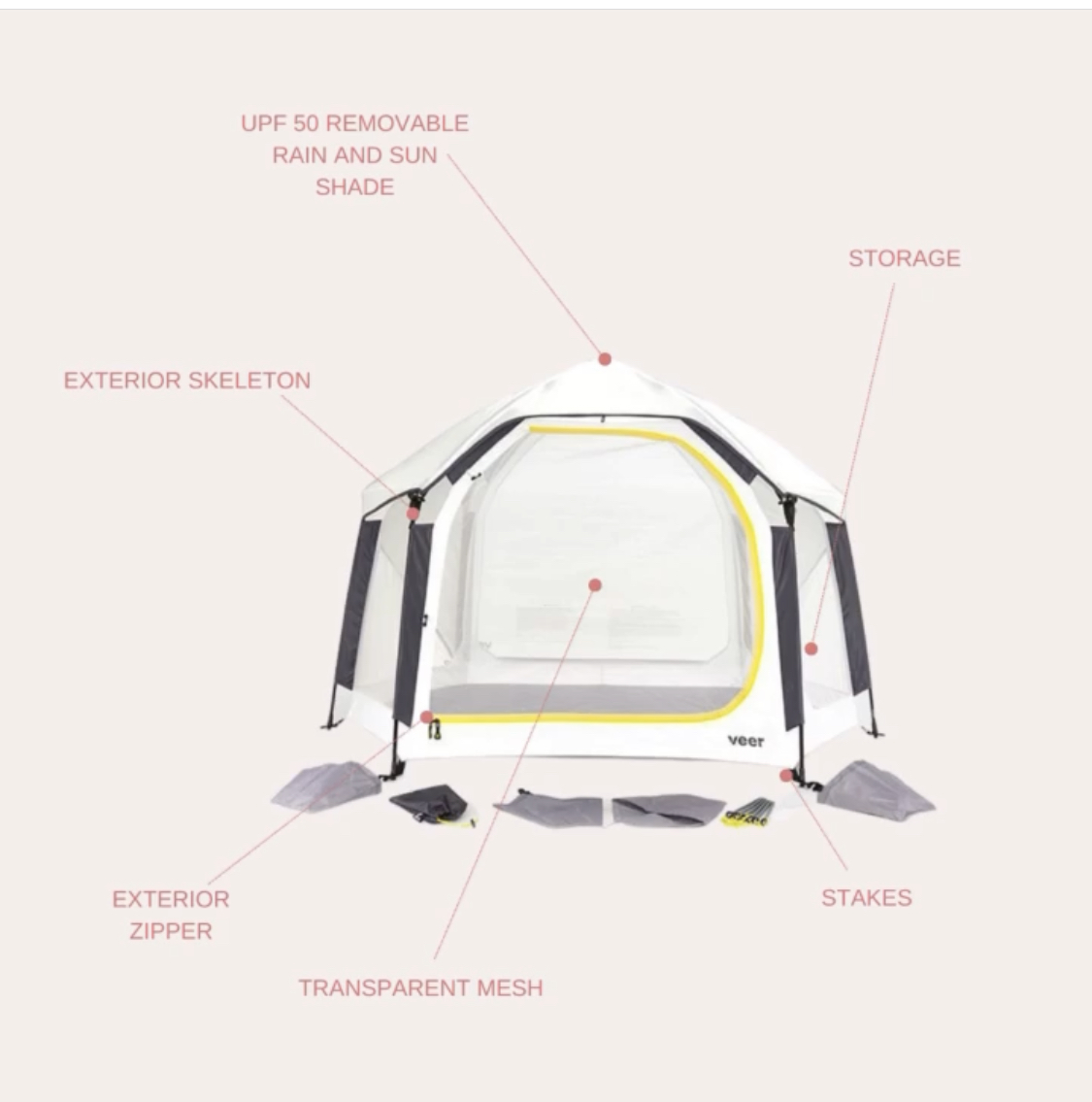 Meet the Veer Basecamp. When you venture in to the wild, Basecamp is the ultimate safe, shady and insect-free pop-up play yard for little ones.