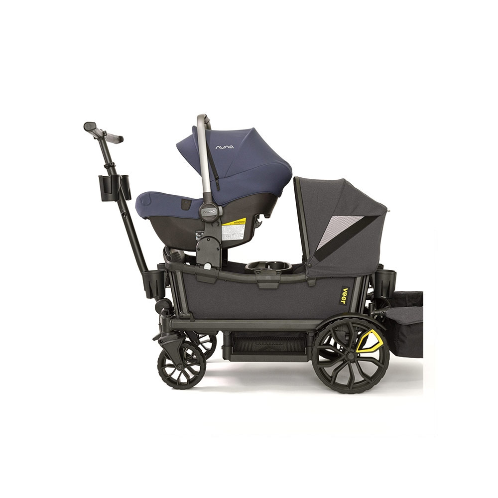 Veer’s Retractable Canopy quickly and intuitively clips onto Cruiser’s frame and easily extends up and down. One or two can be attached above either seat. A peak-a-boo window allows you to see your precious cargo and discreet, hidden magnets hold the window in the up position. Canopy works perfectly with Napper to create the perfect rest stop for young ones.