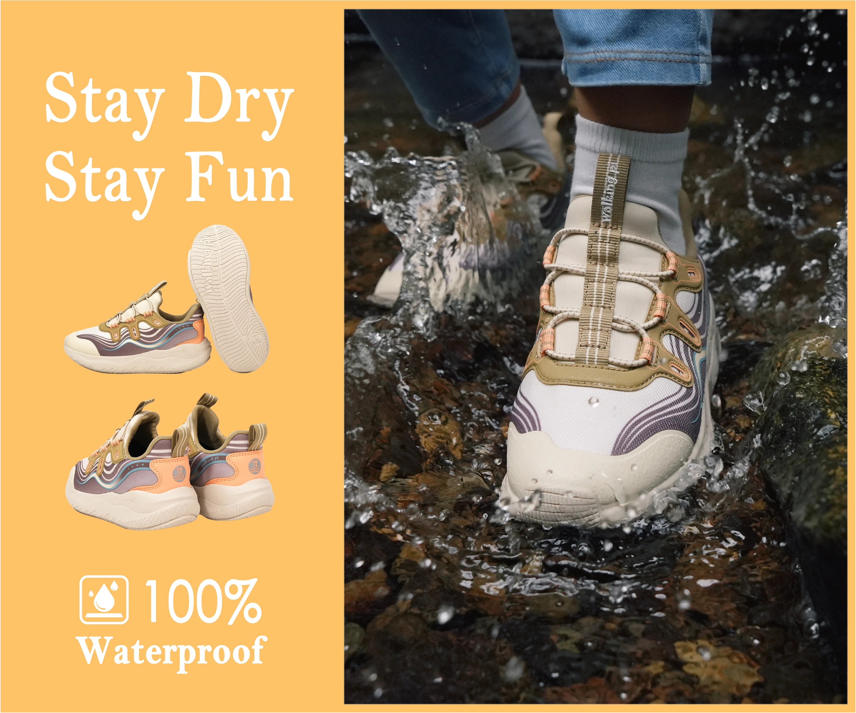 Walking Pi Little Rockies Sneaker – Jasper Squirrel is a waterproof kids’ sneaker designed for outdoor play in all conditions. Featuring a lightweight cushioned sole and breathable construction, it keeps little feet dry, comfortable, and supported throughout the day. With a wide-fit design and durable toe protection, it’s built for active adventures while supporting healthy foot development.Features